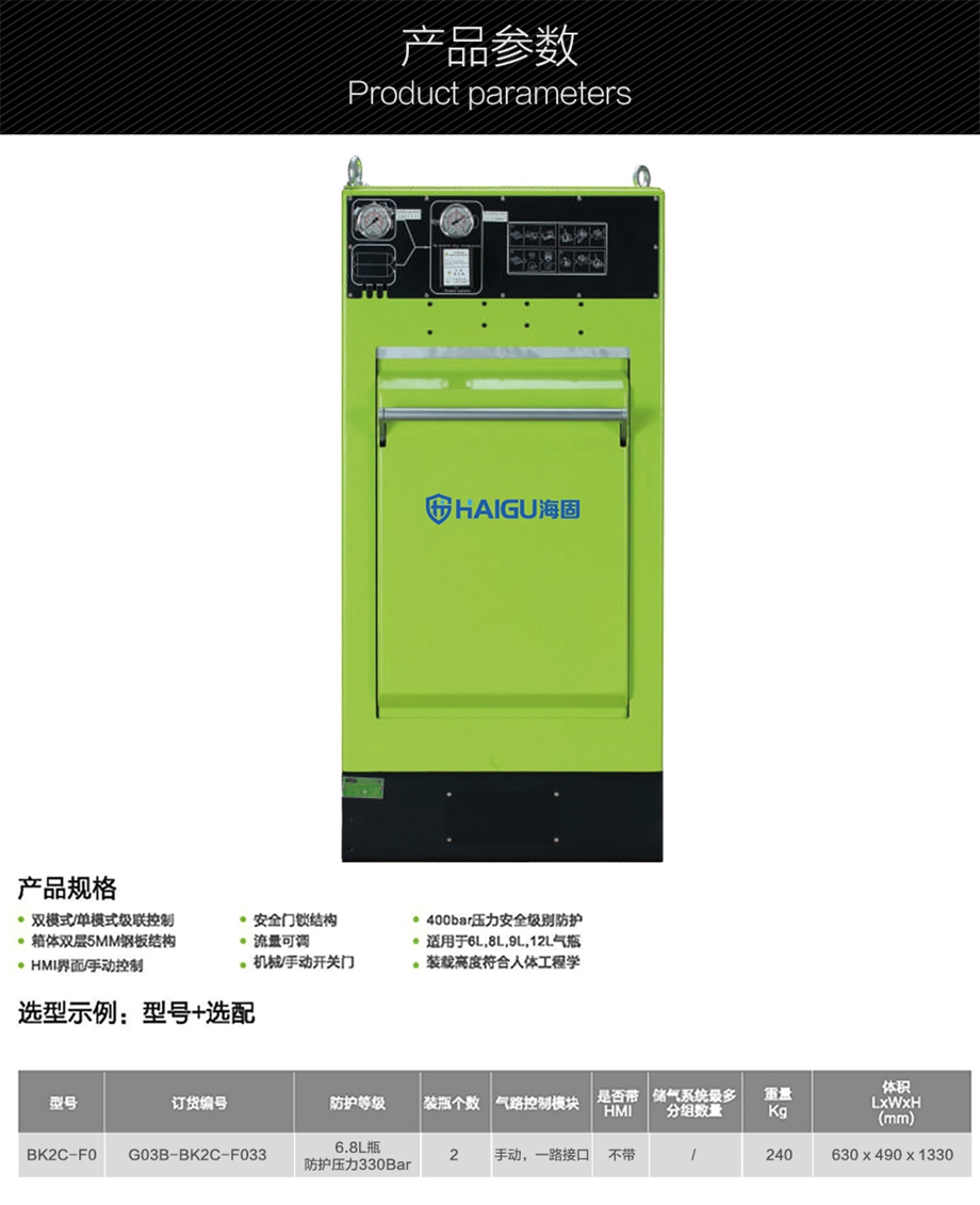 海固HG-BK2C-F0一路2瓶防爆箱 空氣呼吸器充氣防護(hù)裝置