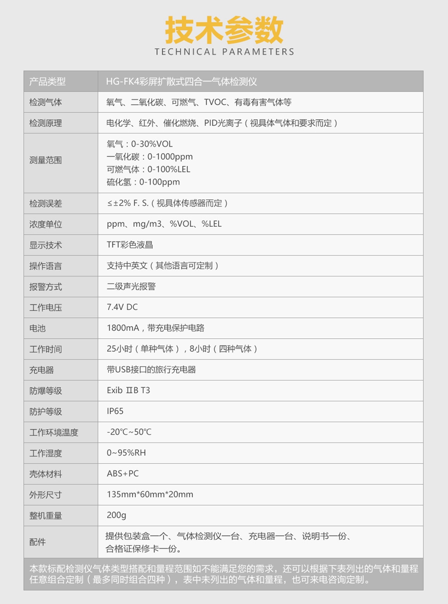 海固HG-FK4彩屏擴(kuò)散式四合一氣體檢測(cè)儀
