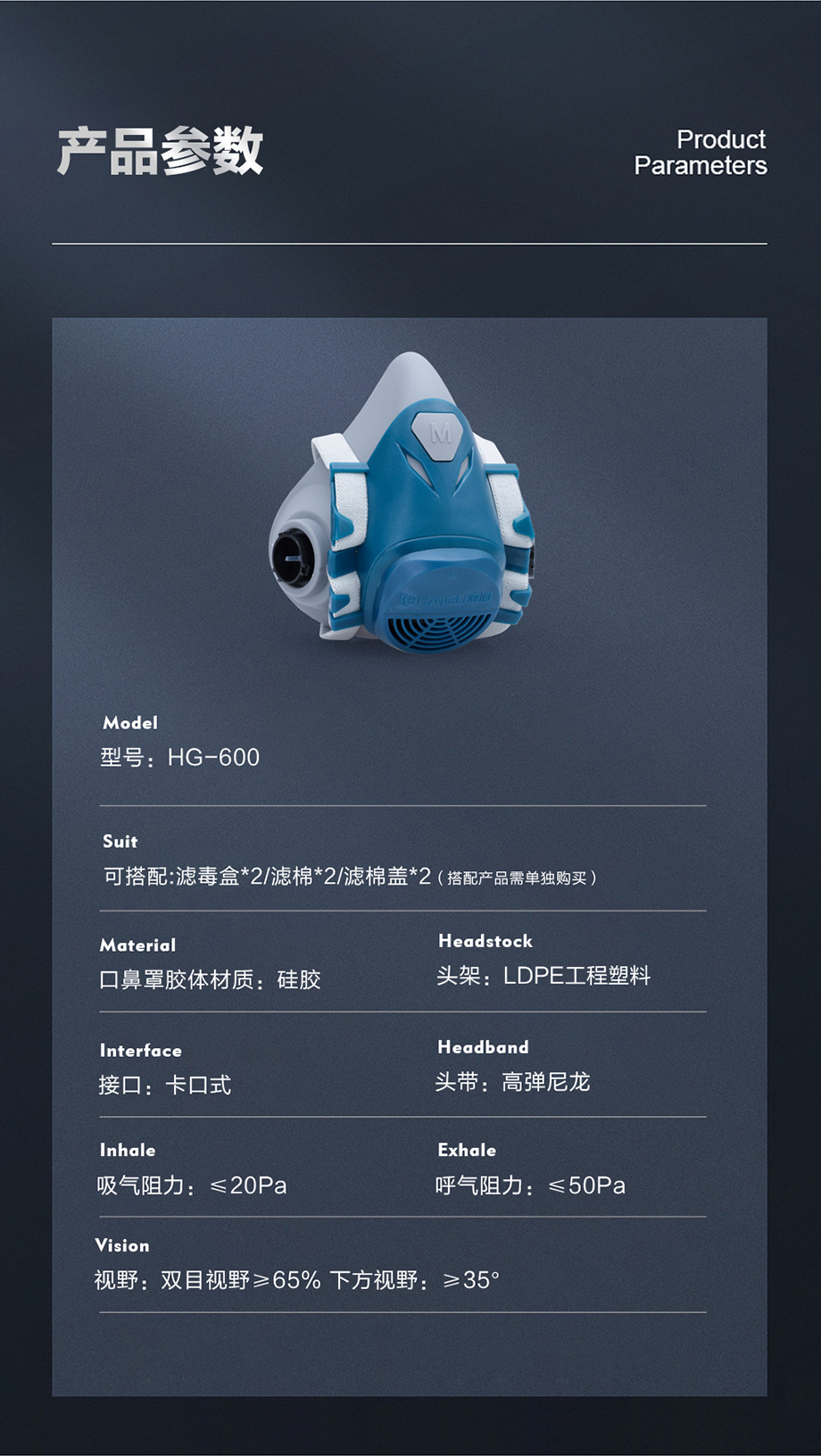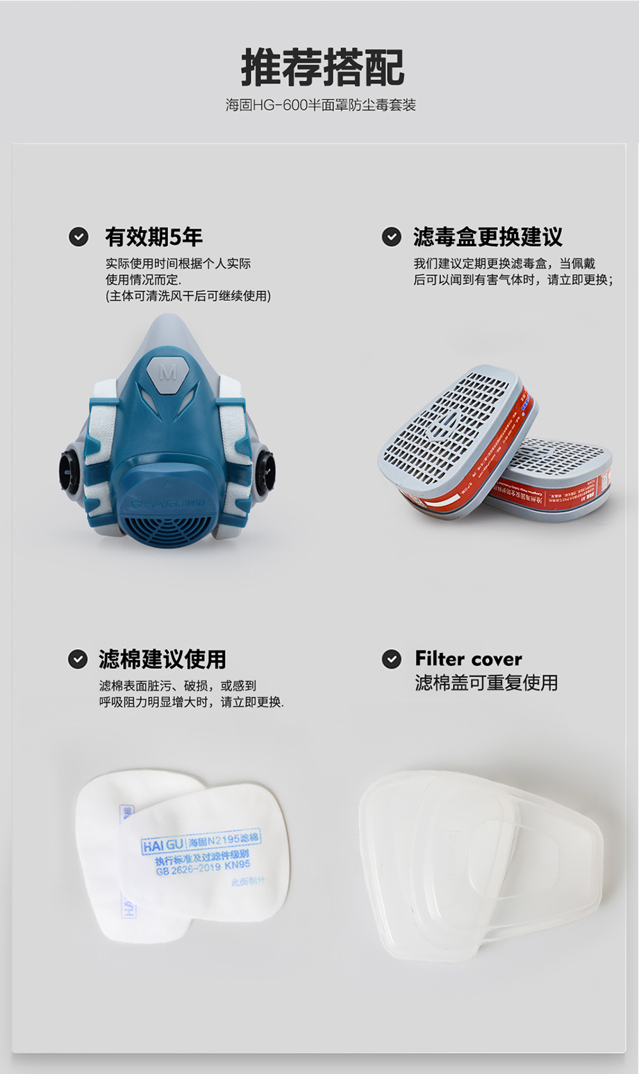 海固HG-600防毒面具半面罩 噴漆 化工 防有毒氣體、粉塵、毒蒸汽等