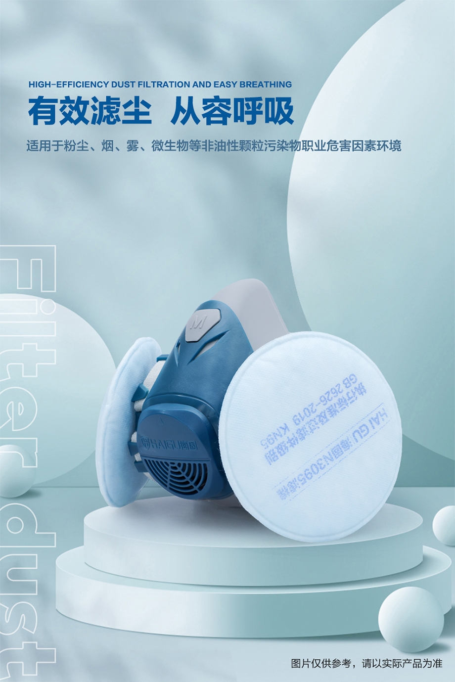 海固HG-600半面罩防毒面具+KN100/KN95/KN90非油性顆粒物濾棉