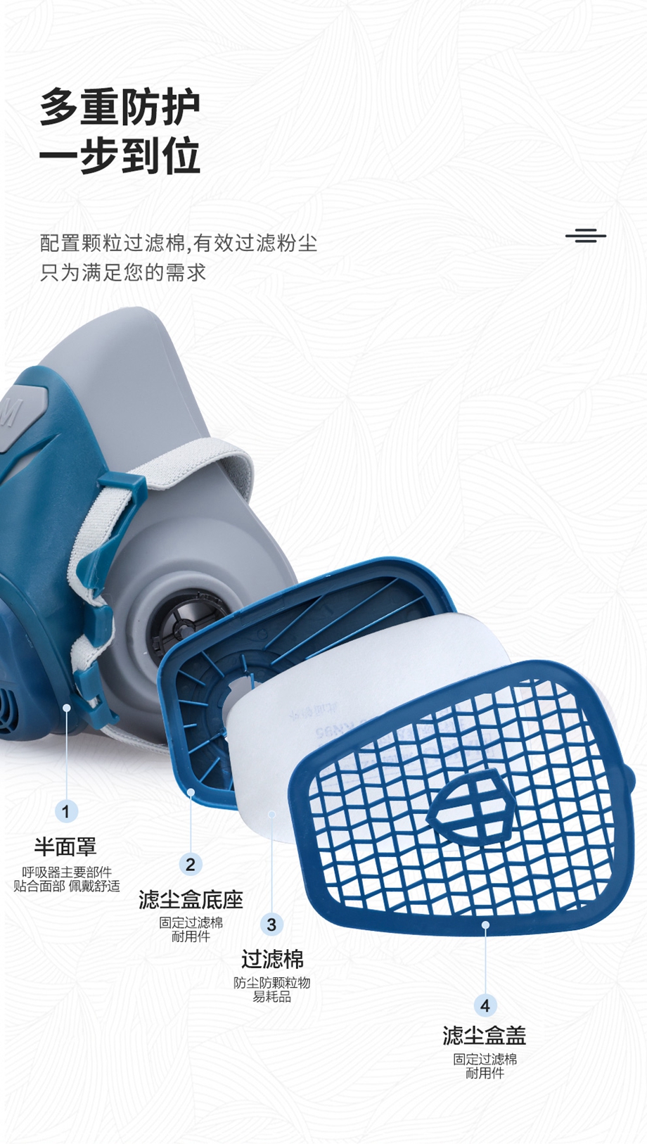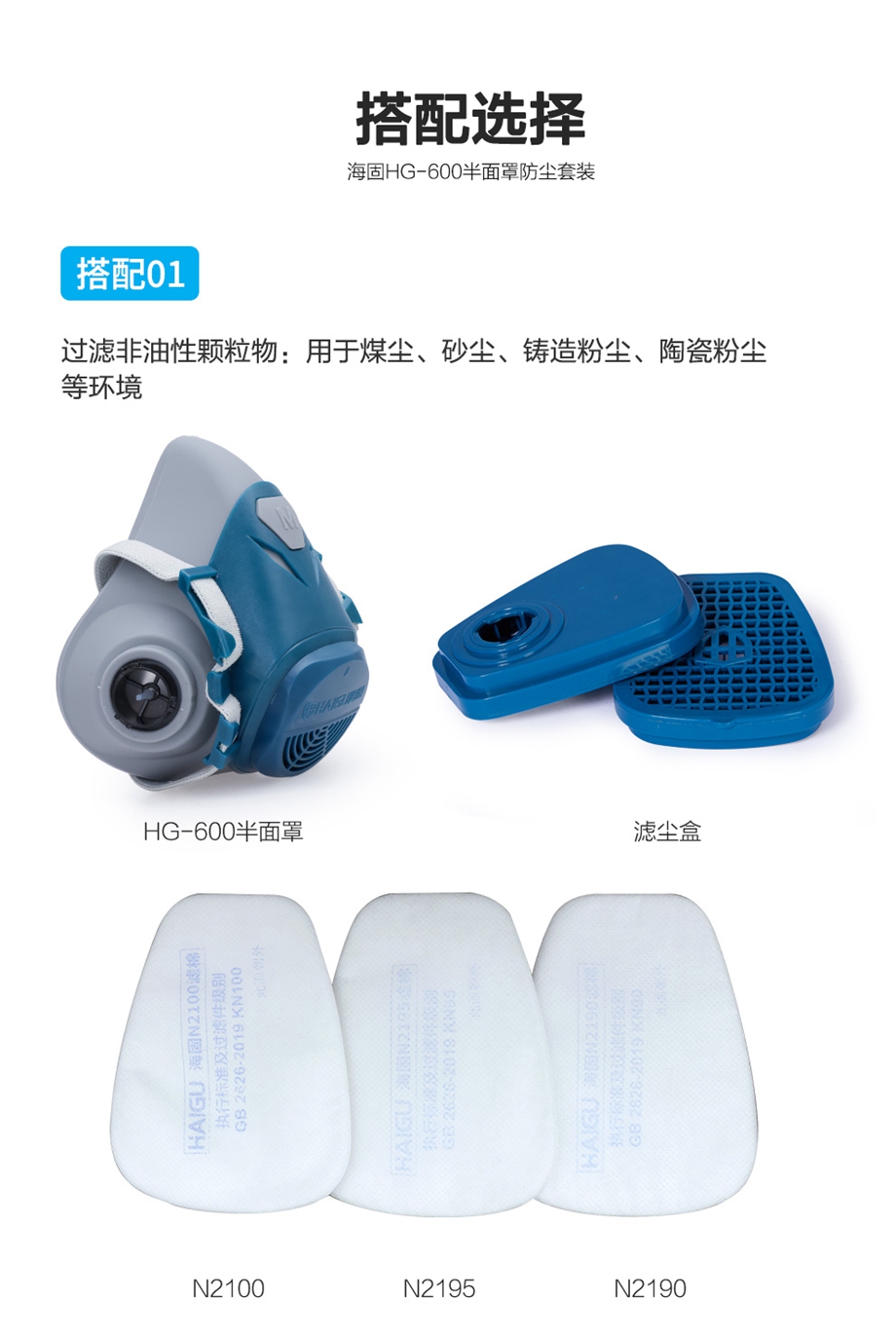 海固600半面罩+濾塵盒 自吸過濾式防塵套裝