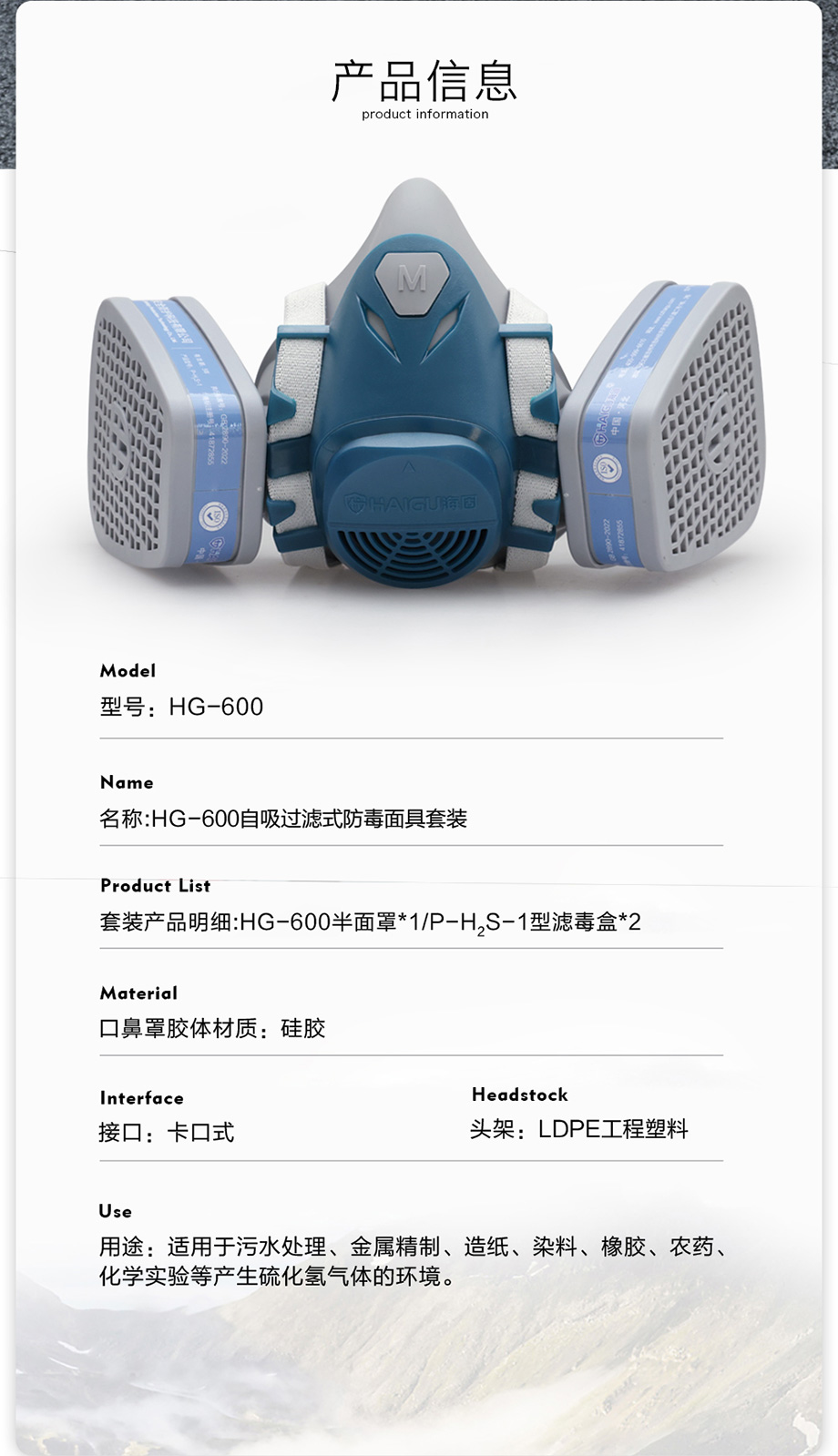 海固600半面罩+P-H2S-1濾毒盒 防護(hù)硫化氫氣體套裝