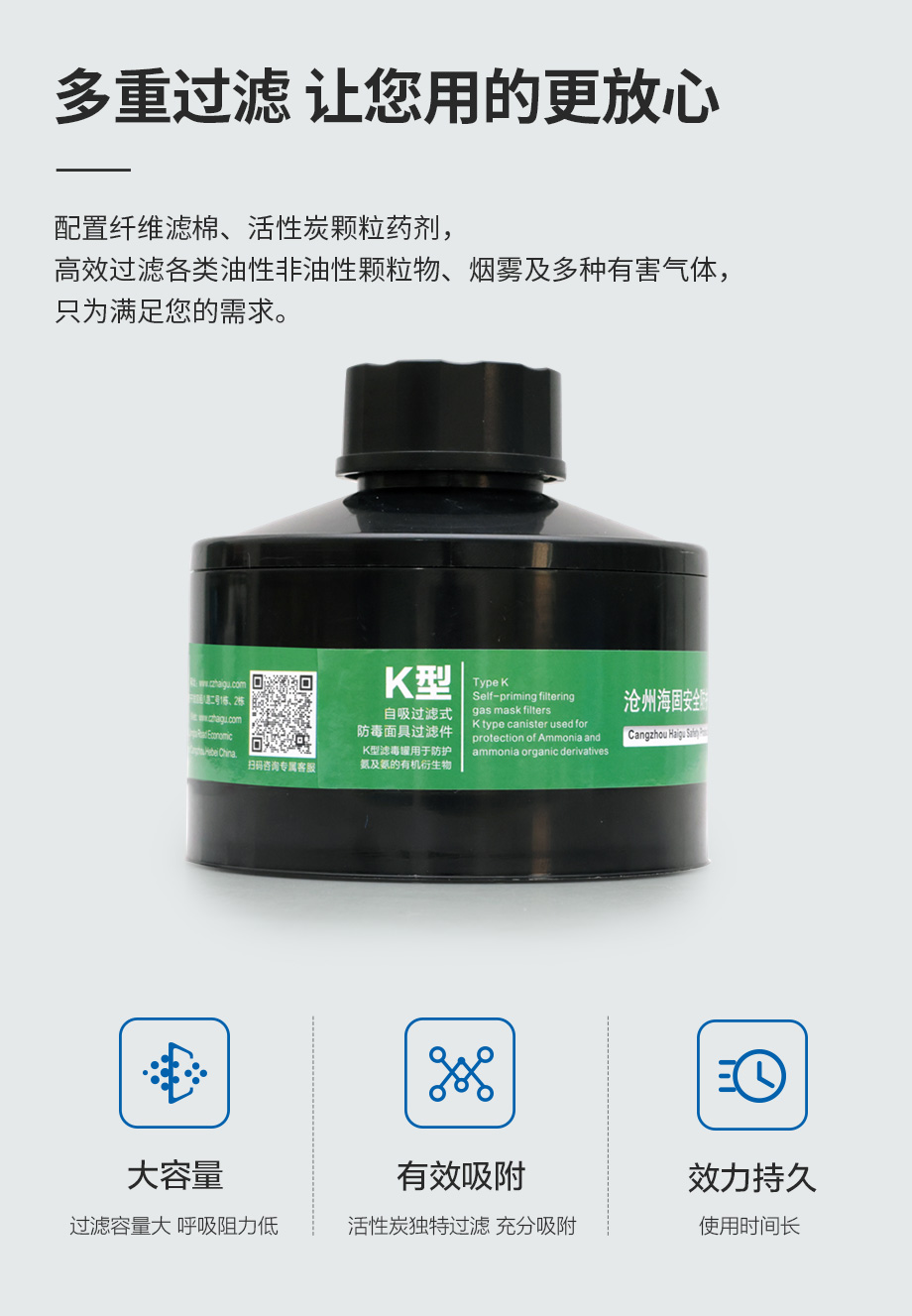 海固911全面罩+HG-ABS/P-K-2濾毒罐 氨氣全面罩防毒面具