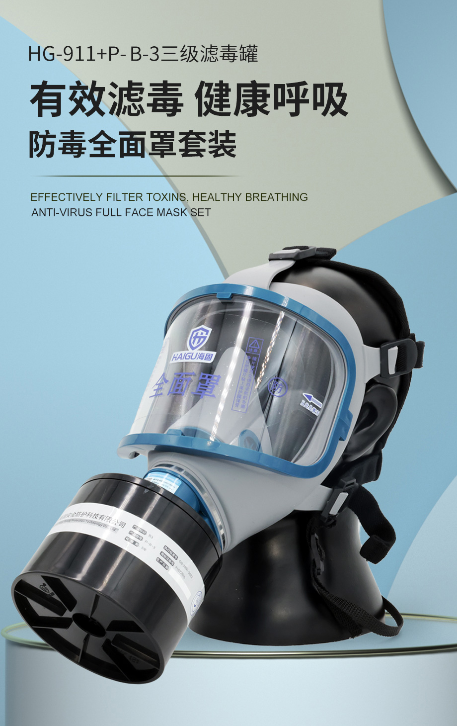 海固911全面罩+HG-ABS/P-B-3濾毒罐 防毒面具 無(wú)機(jī)氣體綜合防護(hù)