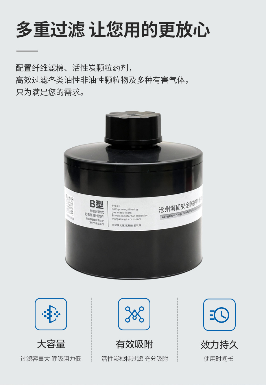 產(chǎn)品規(guī)格:寶藍(lán)灰硅膠/ABS濾毒罐