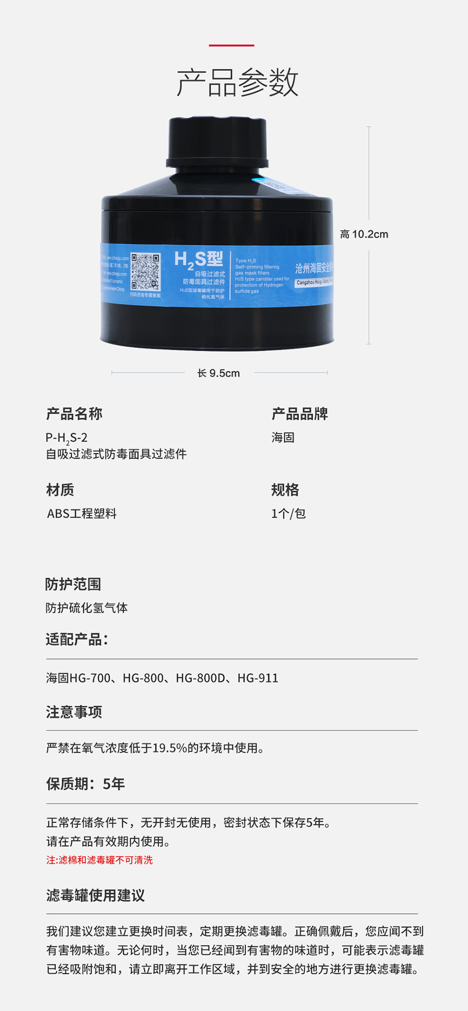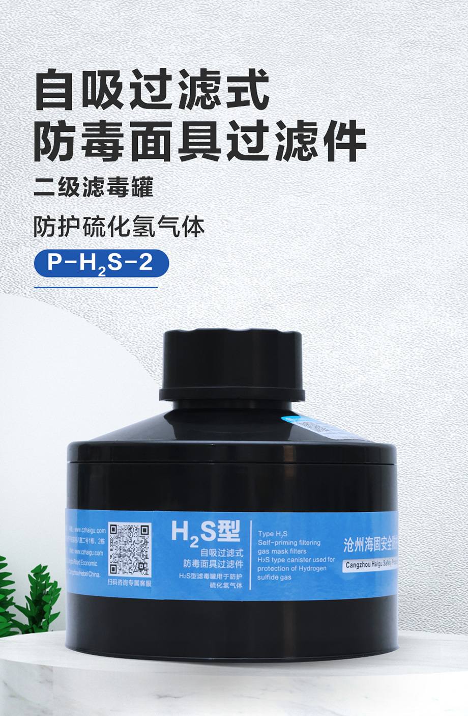 海固P-H2S-2濾毒罐 硫化氫氣體防護(hù)