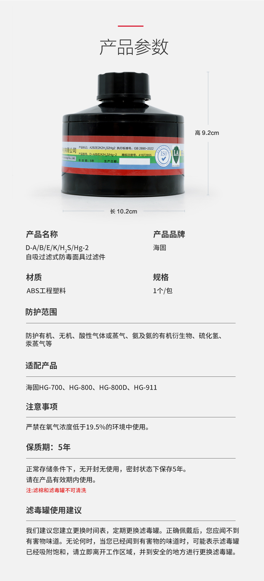海固D-A/B/E/K/H2S/Hg-2 多功能型綜合多氣體防護(hù)濾毒罐