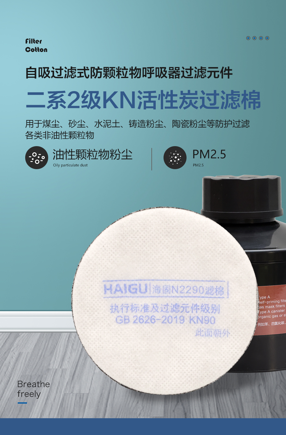 海固2系2級KN無卡扣活性炭過濾棉 N2290/N2295/N2200非油性顆粒物