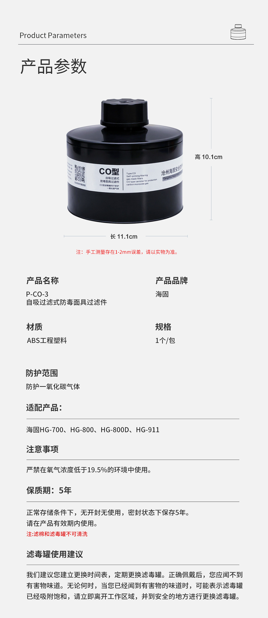產(chǎn)品規(guī)格:ABS濾毒罐