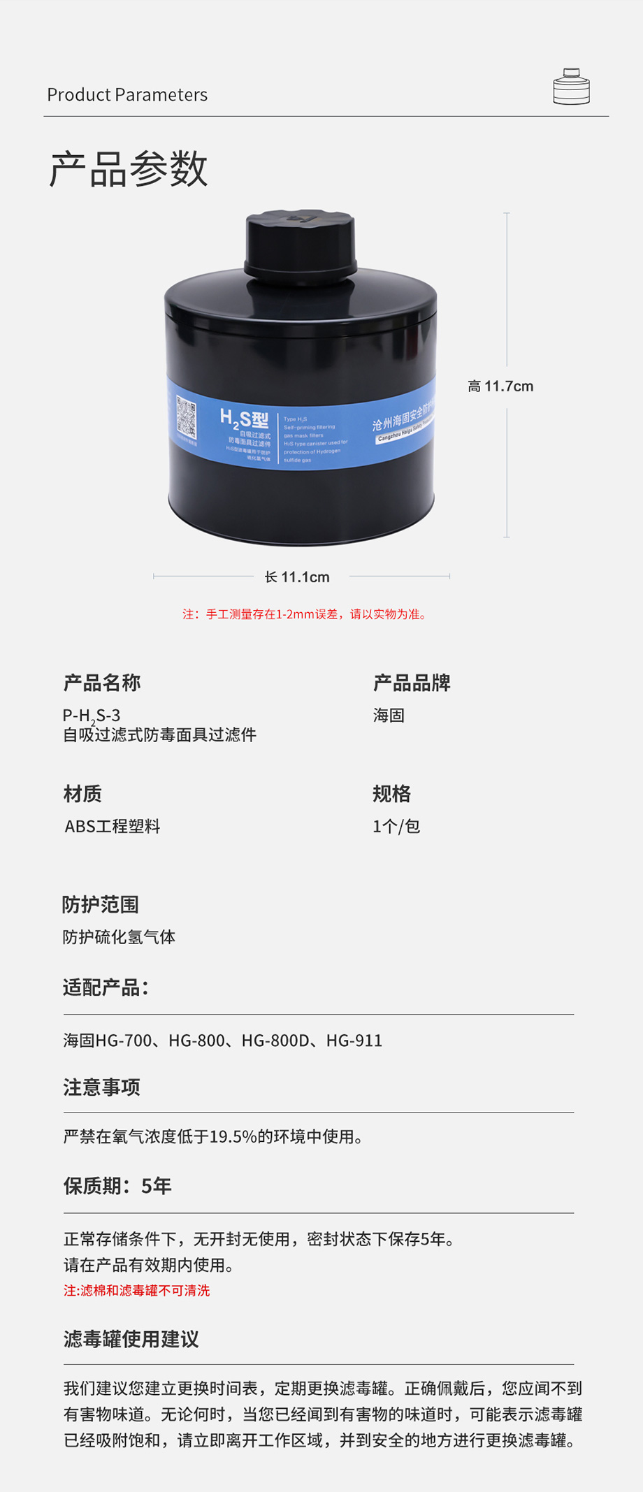 海固P-H2S-3濾毒罐 防護(hù)硫化氫氣體三級(jí)濾毒罐