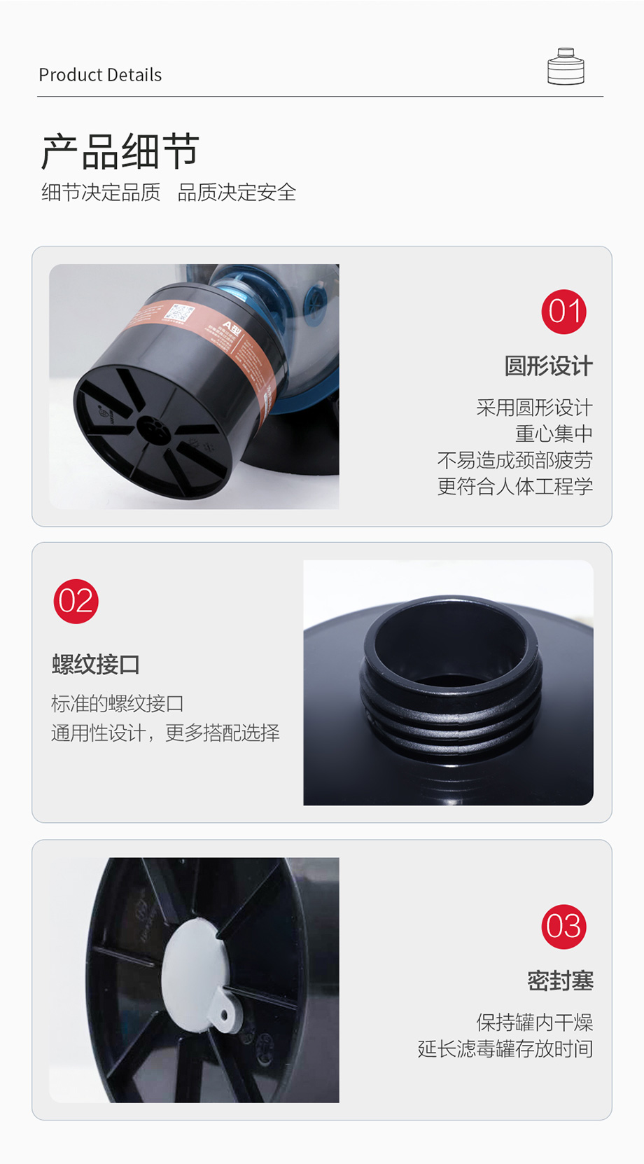 產(chǎn)品規(guī)格:ABS濾毒罐