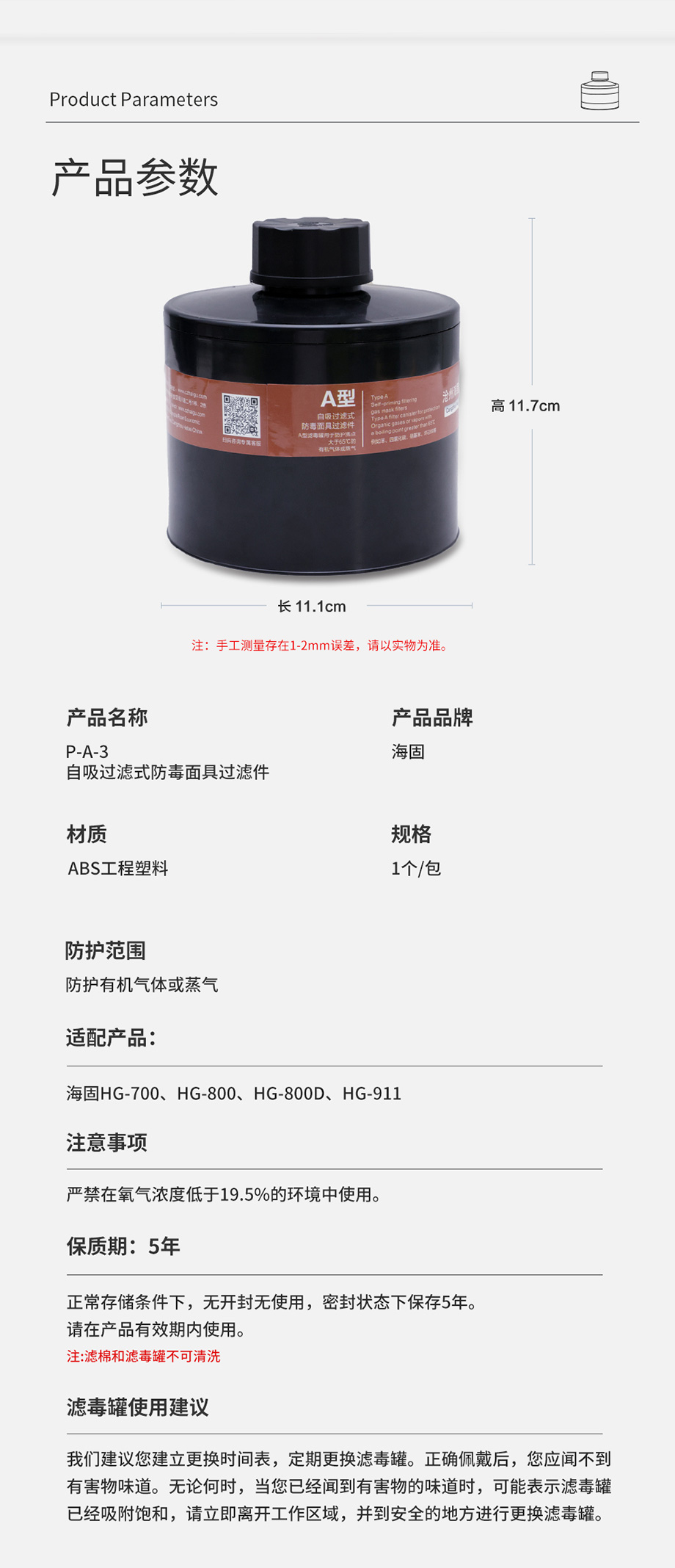 海固P-A-3濾毒罐 有機(jī)氣體苯、四氯化碳、硝基苯、環(huán)己烷等三級(jí)濾毒罐