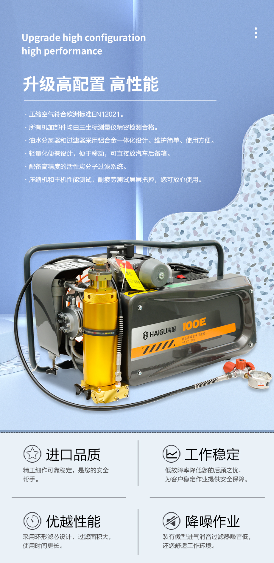 海固HG-CQ100E高壓呼吸空氣壓縮機 正壓式空氣呼吸器充氣泵