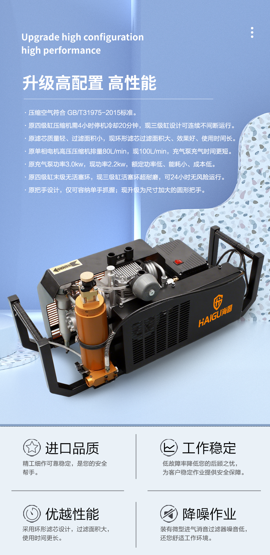 新款海固HG-CQ100B高壓壓縮機(jī) 正壓式空氣呼吸器充氣泵