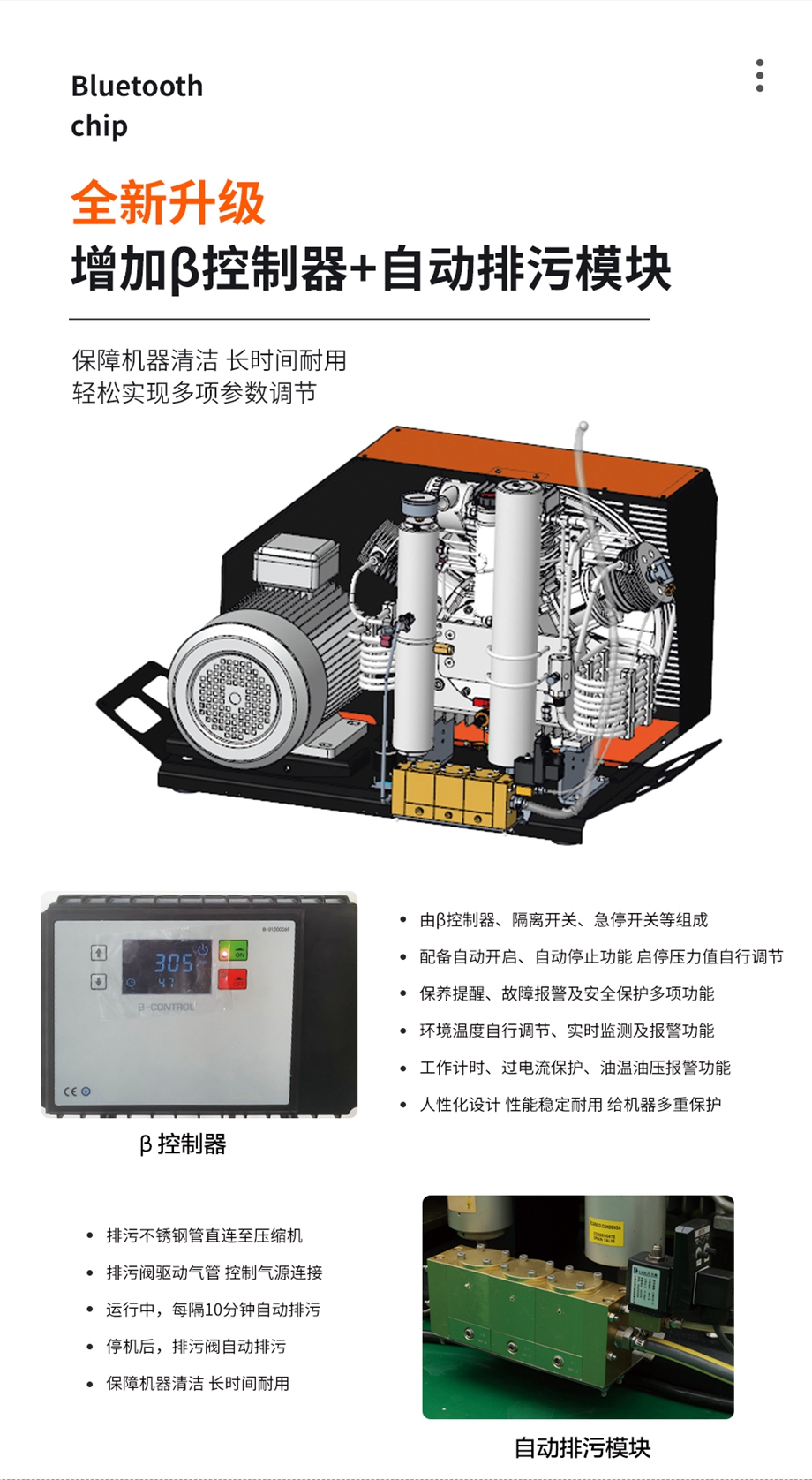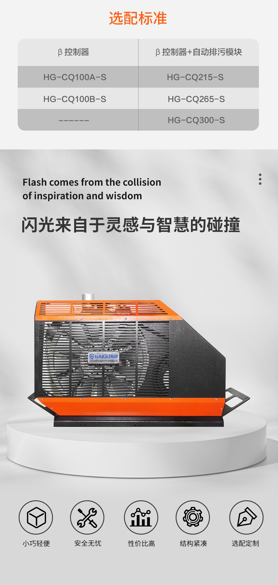 海固HG-CQ215/265/300-S高壓呼吸空氣壓縮機(定制款)新增自啟停和自動排污功能