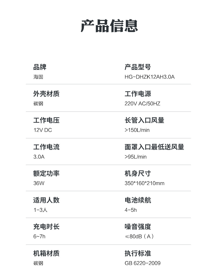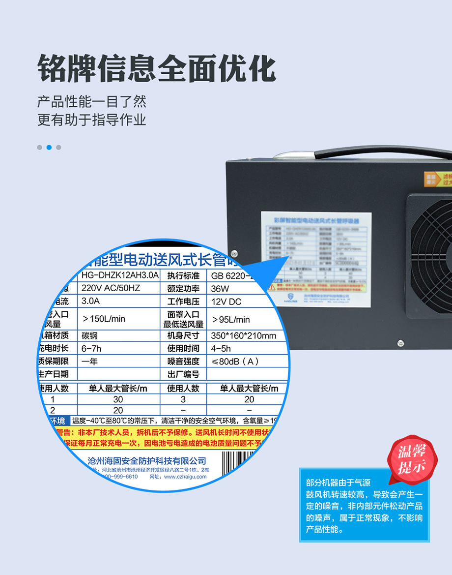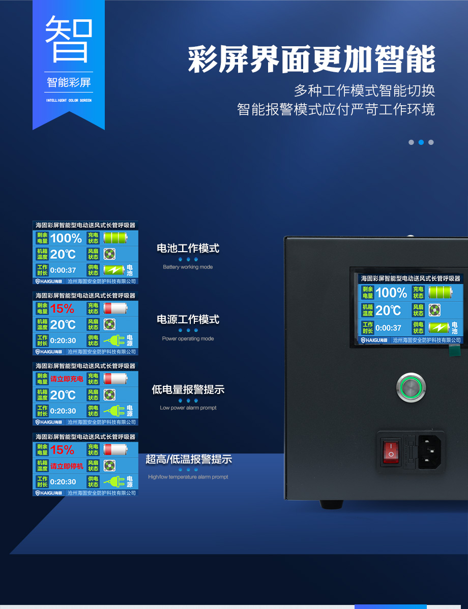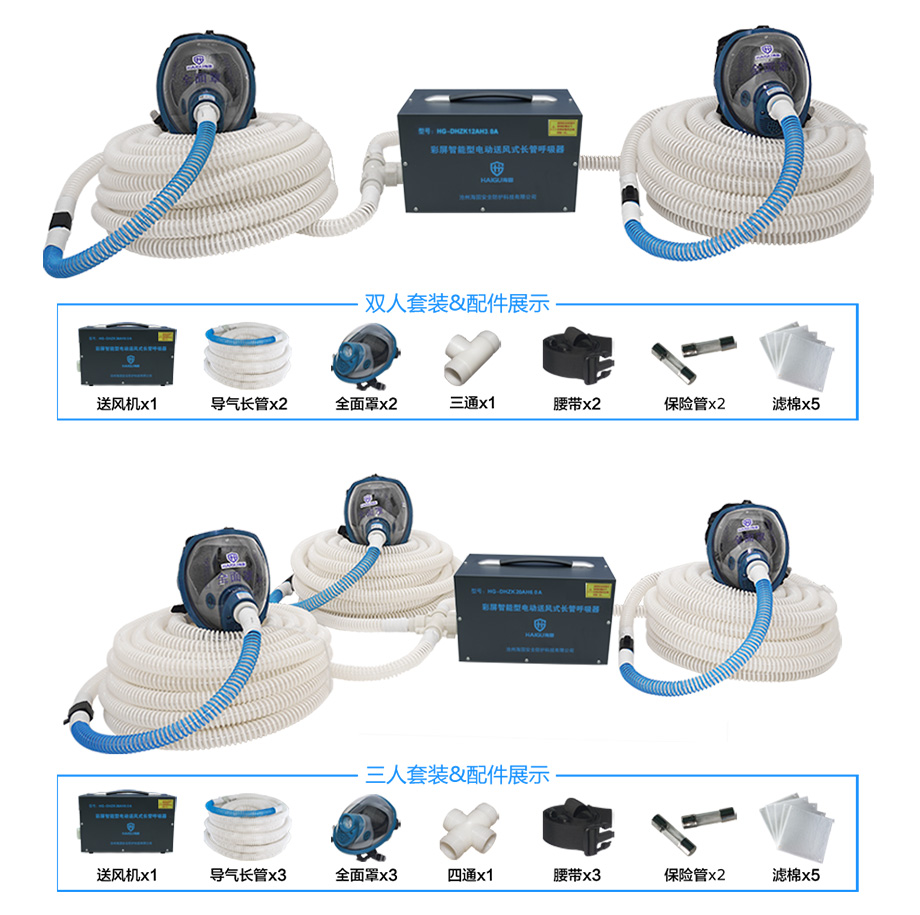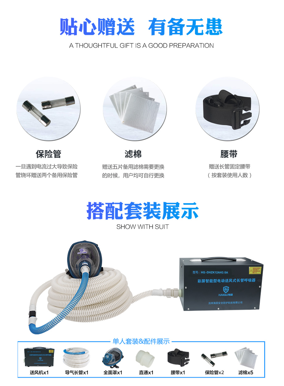 海固HG-DHZK12AH3.0A智能型彩屏 全面罩 單人電動(dòng)送風(fēng)式長管呼吸器