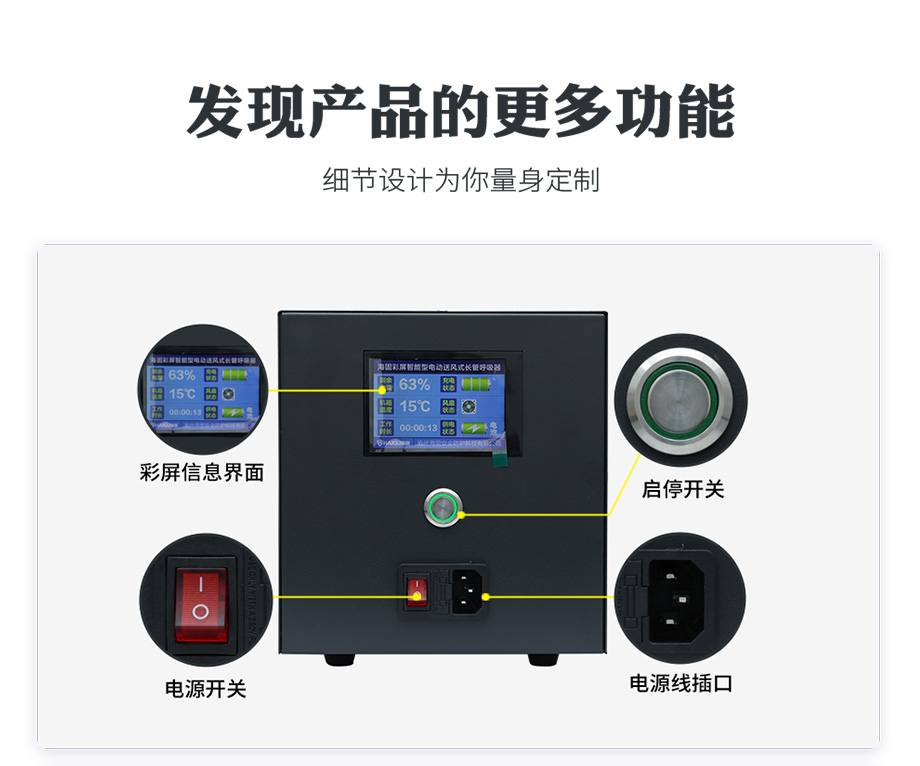 產(chǎn)品名稱:彩屏智能型電動(dòng)送風(fēng)式長管呼吸器