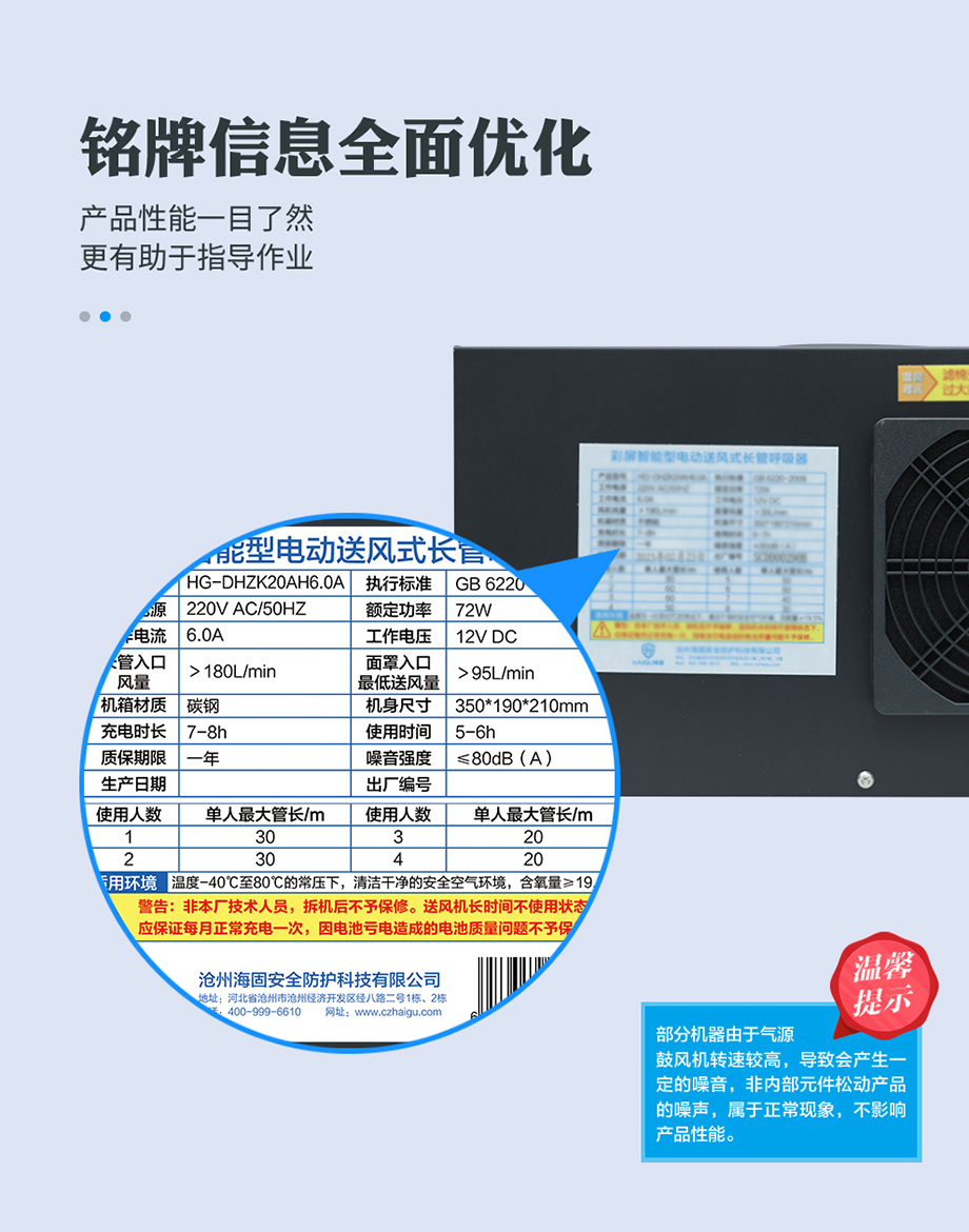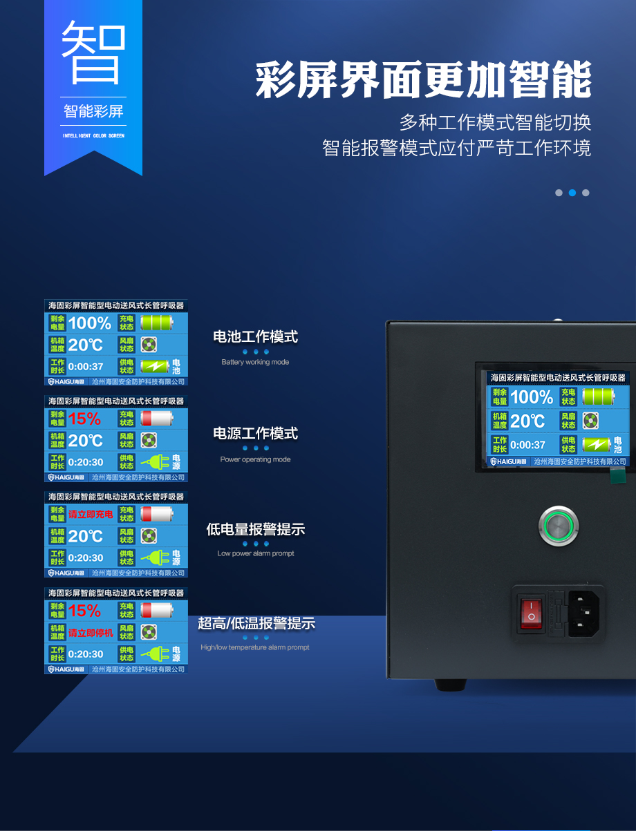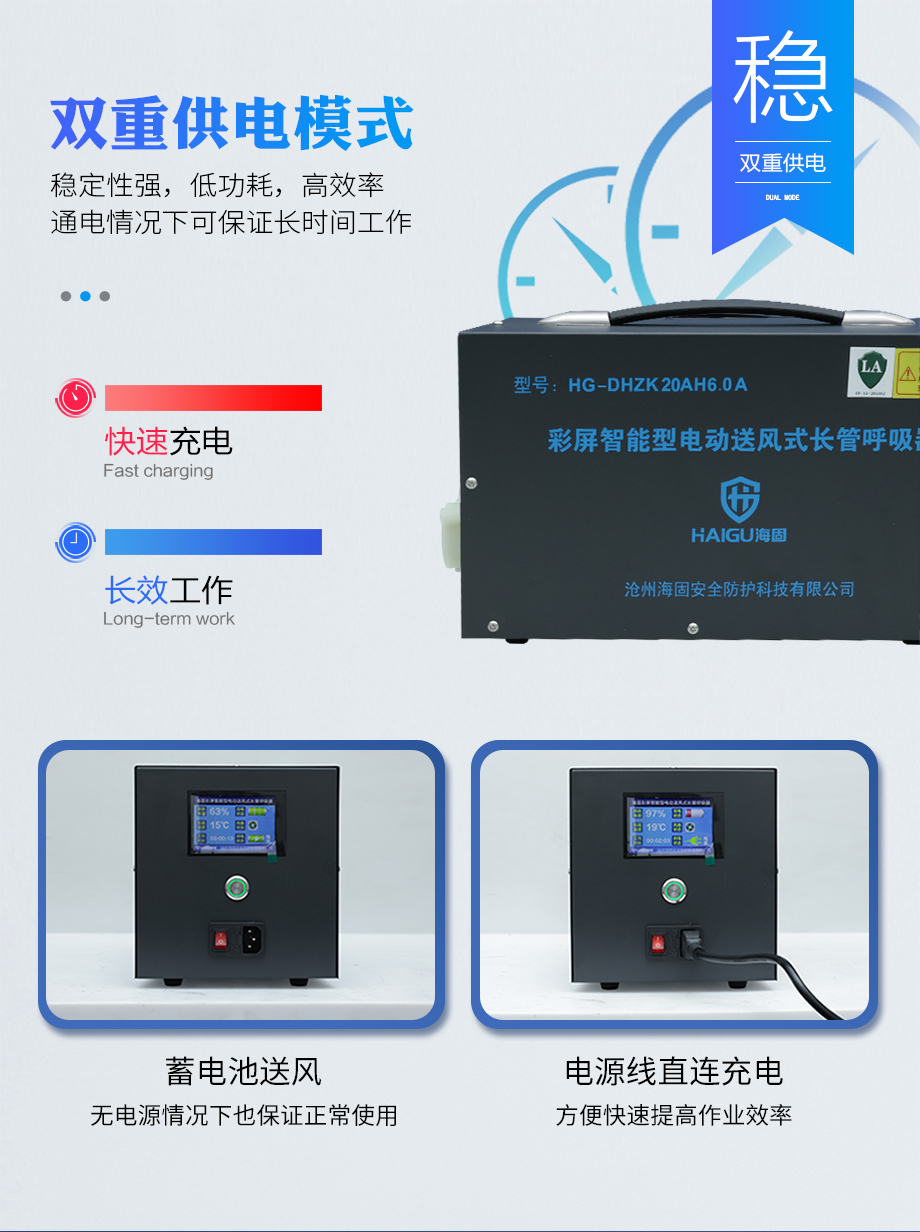 海固HG-DHZK20AH6.0A彩屏智能型 雙人 全面罩 電動送風(fēng)式長管呼吸器