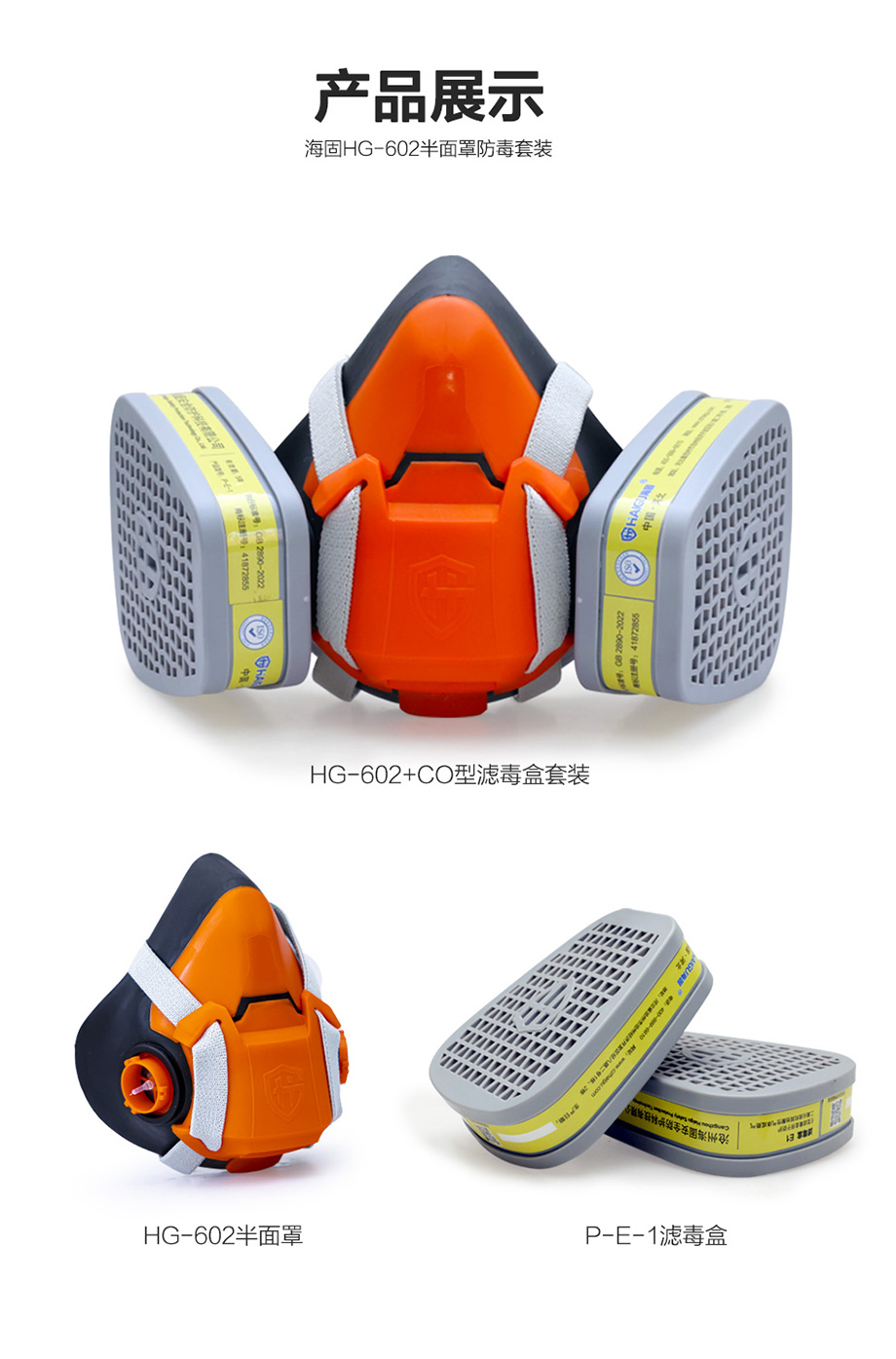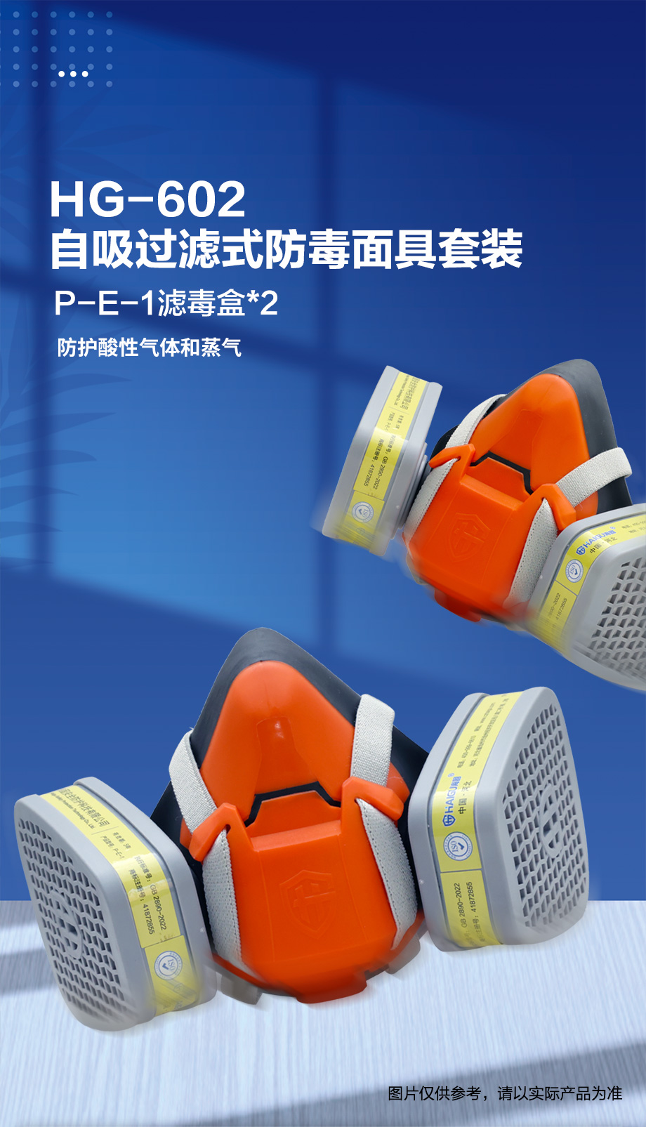海固602半面罩+P-E-1濾毒盒 酸性氣體防護(hù)套裝