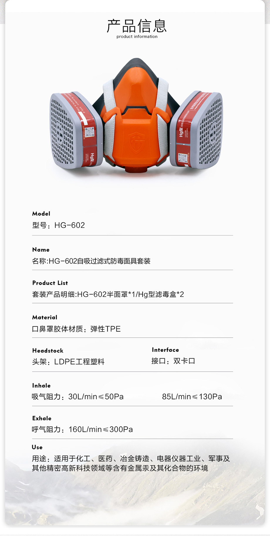 海固602半面罩+P-Hg-1濾毒盒 汞蒸氣防護(hù)套裝