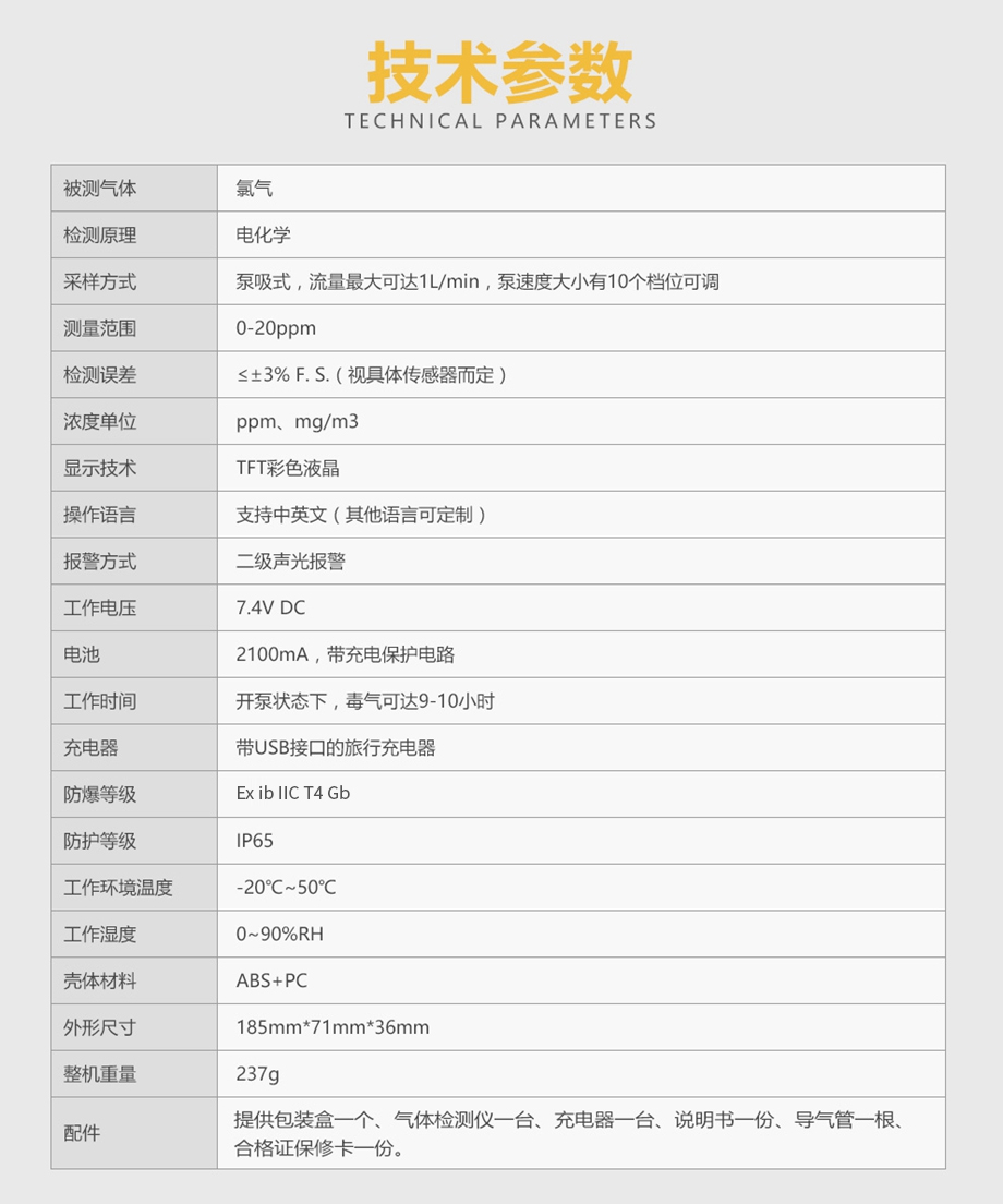 海固HG-BX-CL2氯氣彩屏泵吸單一式氣體檢測(cè)儀