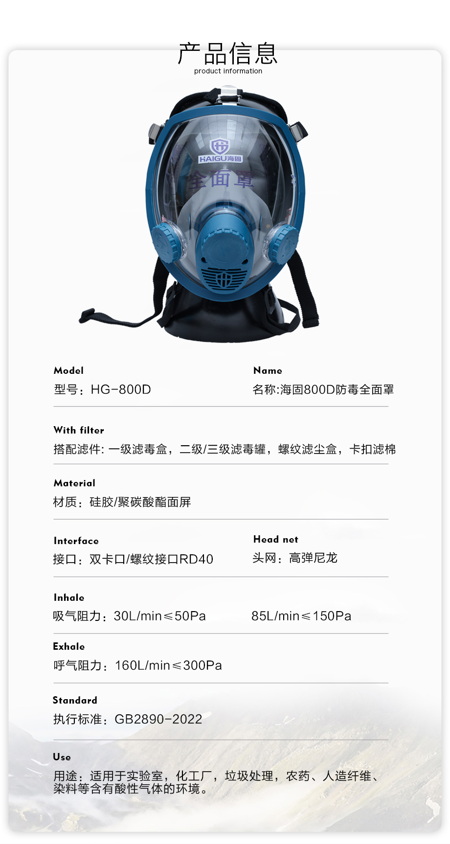 海固800D全面罩+HG-ABS/P-E-3濾毒罐 酸性氣體防護(hù)套裝