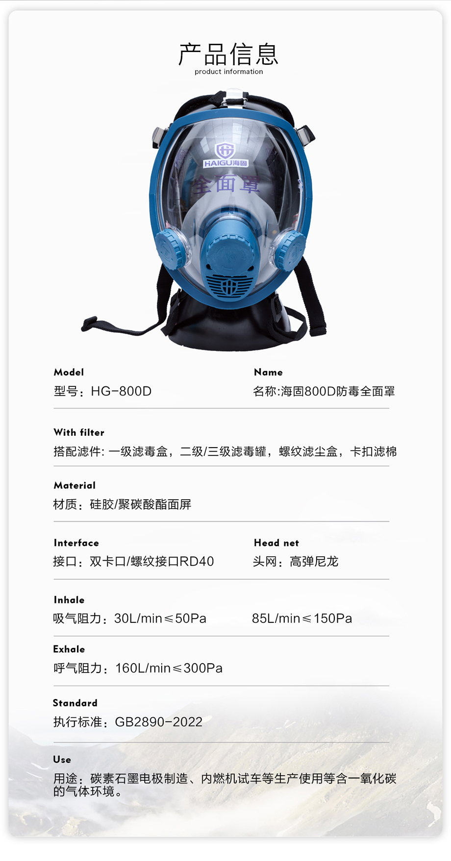海固800D全面罩+HG-ABS/P-CO-2濾毒罐 一氧化碳防護(hù)套裝