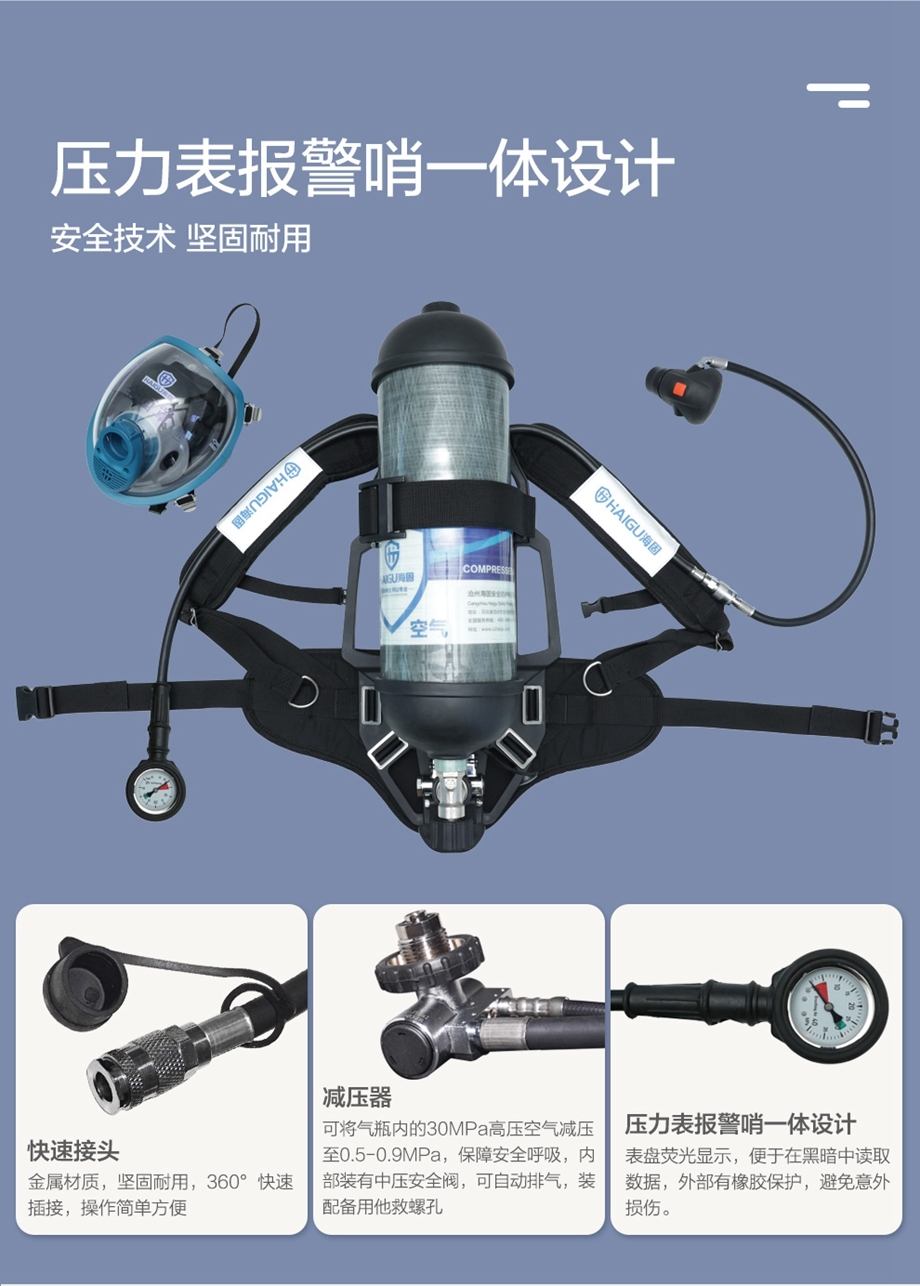 海固HG-RHZKF6.8/30自給開路式空氣呼吸器 壓力表報警哨一體化