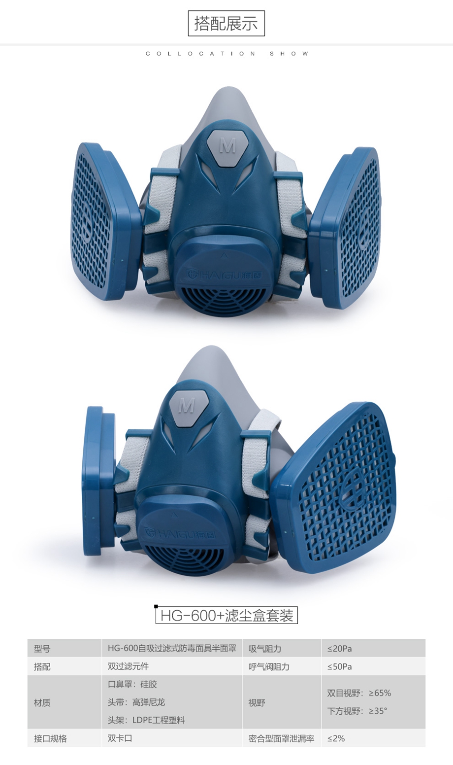 海固半面罩/全面罩搭配濾塵盒濾棉 防塵防顆粒物呼吸套裝