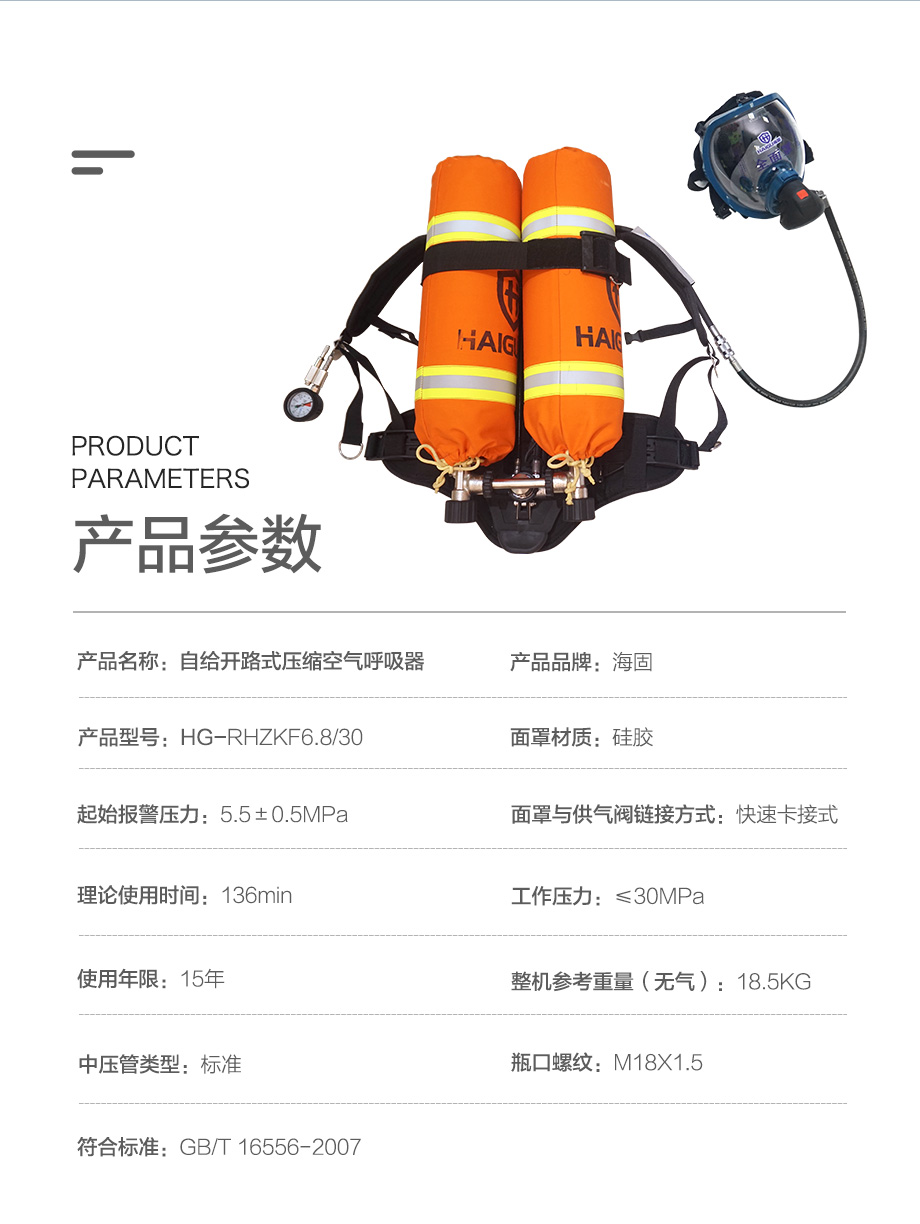 海固RHZKF6.8/30(雙瓶款) 正壓式空氣呼吸器 6.8L雙瓶